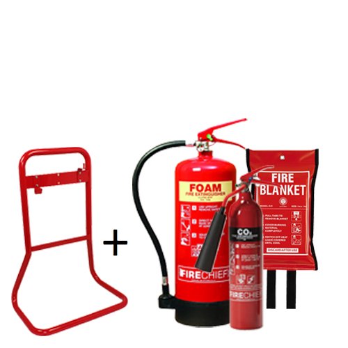 Double Red Stand + 6ltr Foam + 2kg Co2 + 1.2x1.2m Fire Blanket