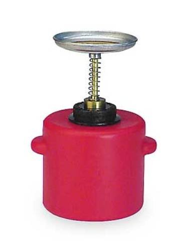 Eagle Plunger Cans ideal for cleaning with flammable or volatile fluids, featuring a brass flame arrestor dasher screens and pump assemblies and comply with OSHA standards, polyethylene, red, 4 quarts.