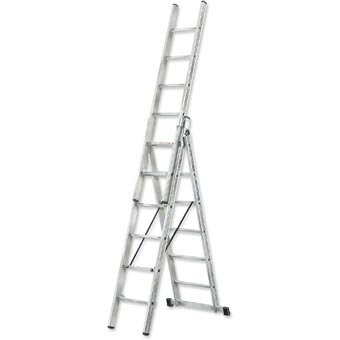 PRODUCT DESCRIPTIONS:5 different configurations combined in a 3-section ladder Straight ladder, double- or triple-section sliding extension ladder, a stepladder or extending stepladder Exceptionally stable Sturdy outrigger-type transverse base bar fitted with anti-slip rubber feet 4 internal and 4 external fixing points provide 8 fold professional security between rungs and side rails Wide cross section aluminium side rails minimise flexing Maximum load 150kg Manufactured according to strictest quality and safety rules Conforms to EN131 and are approved by an appropriate authority Manufactured in the EU Delivered direct to your door from Germany.