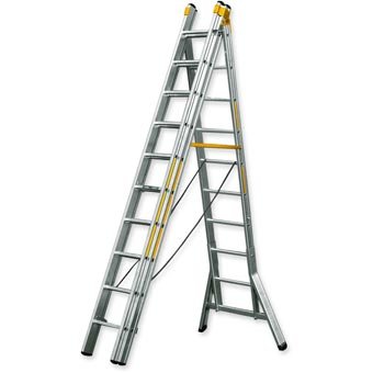 PRODUCT DESCRIPTIONS:Removable sliding section can be used to compensate for height differences on staircases or uneven ground Five different configurations for complete versatility Extra wide base, screwed and welded for firm standing and maximum stability Non-stretch, strong cord and additional metal bars to prevent ladder slipping open Maximum load 150kg Manufactured in the EU according to strict quality and safety rules Conforms to international regulations Delivered direct to your door from Germany.