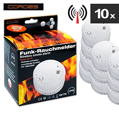 CC 70 Cordes - Set of 10 Wireless Smoke Detector Fire Alarm