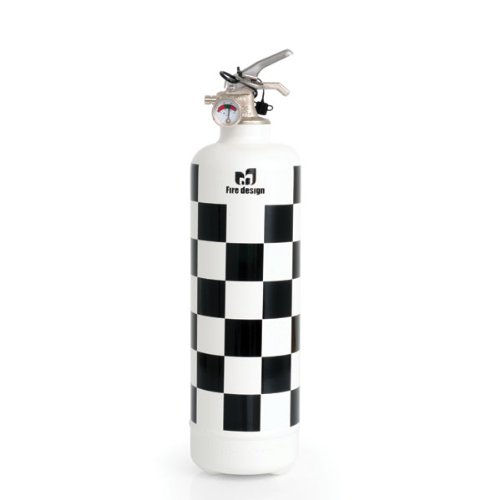 PRODUCT DESCRIPTIONS:Safety is paramount, so you want your home to be protected from fire, but you also don't want an ugly red extinguisher on display for all to see. Well this fun new fire extinguisher fits the bill - it's perfect for domestic use, but, given its compact size, equally ideal for wherever else you'd like the added protection of an extinguisher - such as the car, boat or caravan. With its classic black and white Chequered Flag design, it will fit right in in the trendiest of pads. But don't be fooled by the colourful exterior of this extinguisher. Inside, it contains Dry Powder - universally suitable for extinguishing all types of fire - and enough of it for you to tackle a blaze for 8 seconds. As you would expect with an item such as this, strict controls are in place for the manufacturing process, and you can be assured that this extinguisher is no exception; a serial number and EC approval mark is engraved on the device's tank, along with the date of the sealing of the pin and the verification of the pressure gauge. What's more, in the event that you do have to discharge your extinguisher, just send it back to the manufacturer and they'll re-fill it for you free of charge, a service that's valid throughout the life of its 10 year warranty. Simple instructions for use mean the whole family can learn what to do with it in the event of an emergency, plus it comes with its own mounting bracket so the extinguisher can be easily attached to the wall, ready for use at a moment's notice. Measures 33cm tall with a diameter of 8.5cm. Weight 1kg .