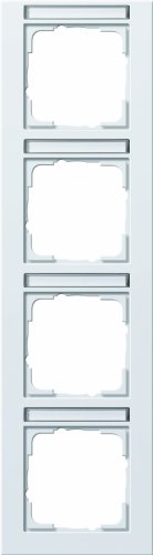 Gira 111429 Cover Frame 4-Gang with Inscription Space Perpendicular Gira E2, Pure White